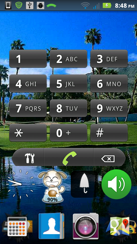 As mentioned previously, this is the smartphone I am setting up for my mom. Here’s what her home screen will look like. Note that there is only one screen for her home screen, so she doesn’t have to worry about navigating anywhere in order to use the phone (ie, use the phone as a phone to call someone).